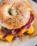 Egg whites, tomatoes, spinach, onions, feta cheese with oregano and olive oil. Served on your choice of whole wheat wrap or multigrain baguette.